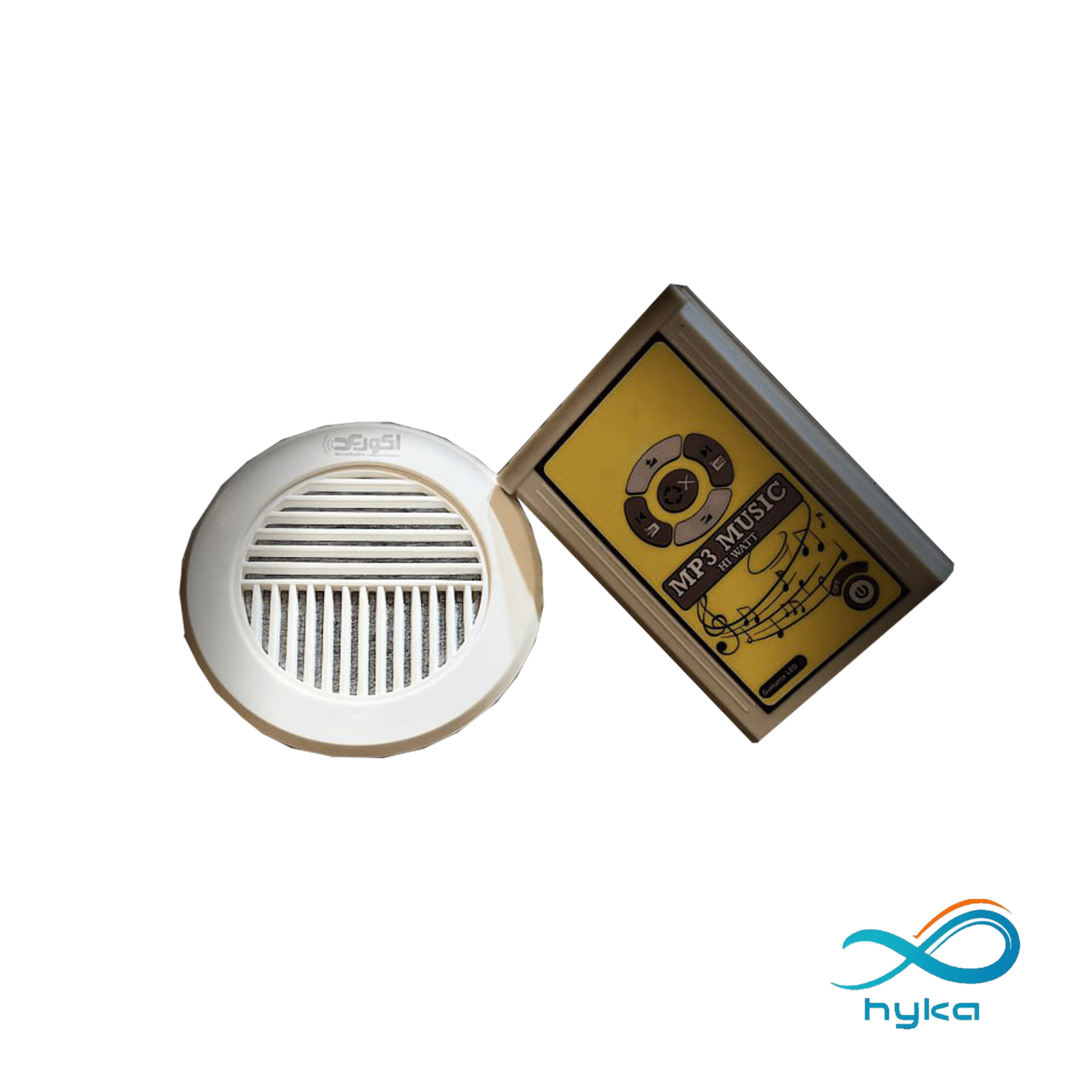 برای هر دستگاه، امکان اتصال به دو عدد بلندگوی ۵ وات در نظر گرفته شده است که بسته به جانمایی محیط، می‌توان آن‌ها را در نقاط بهینه نصب نمود. ترکیب این دو اسپیکر صدایی واضح و شفاف با شدت مناسب برای فضاهای کوچک و مرطوب ارائه می‌دهد.