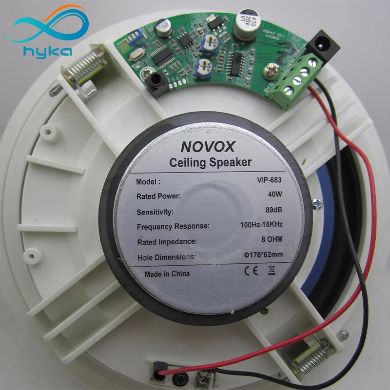نحوه نصب این بلندگو : این مدل بلندگو برای نصب در انواع سقف کاذب مانند کناف٫رابیتس٫تایل و حتی پی وی سی کاربرد دارد نیاز به یک سوراخ به قطر ۲۰ سانتی متر هست که توسط دو چنگک فلزی توی فضا محکم می شود. برای تغذیه نیاز به یک برق ۱۲ ولت تا ۱۵ ولت dc دارد که آداپتور همراه آن هست و به آن آداپتور باید برق ۲۲۰ ولت داده شود و از بلندگو بلوتوثی به بلندگو کمکی کافیست که یک سیم دو رشته دو در یک کشیده شود.